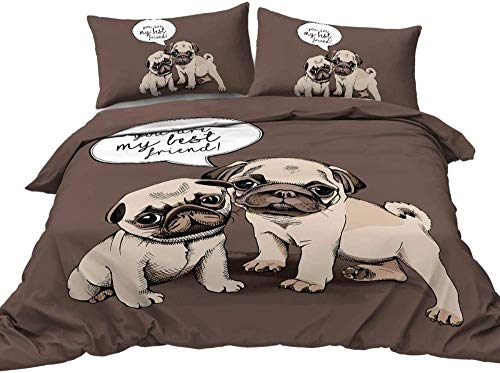 HKDGHTHJ - غطاء لحاف ثلاثي الابعاد فائق النعومة ومريح مطبوع بنمط كلب بولدوج واقتباس عصري 135×200 سم فرش سرير كتان بسوستة للاطفال، شفاف