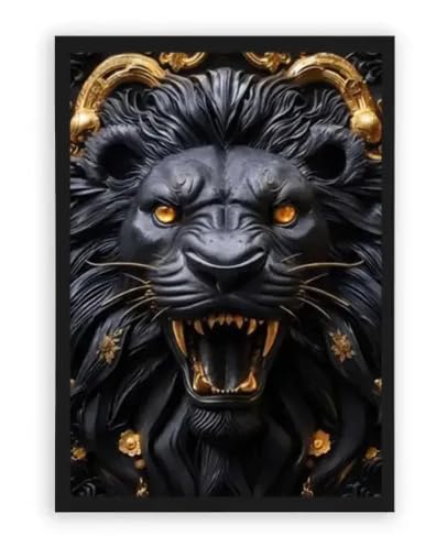 لوحة فنية جدارية ثلاثية الأبعاد بتصميم أسد أسود، لوحة زخرفية بنمط قوطي مع لمسات ذهبية، تابلوه حائط ديكور منزلي عصري (50 × 60 سم)