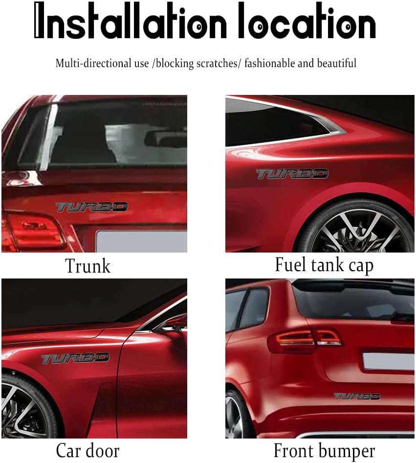 Generic - ملصق شعار سيارةمعدني بتصميم كلمة «Turbo» اسوود بارزة ثلاثية الأبعاد، للوضع على اكصدام السيارة الجانبي والخلفي وصندوق السيارة الخلفي، شعار لاصق للتزيين مناسب لجميع السيارات