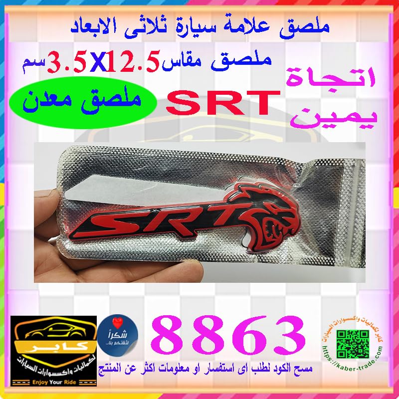 Generic - ملصق سيارة ثلاثي الابعاد كلمه SRT متوافقه مع كل السيارات والشاحنات وسيارات الدفع الرباعي ( اتجاه يمين ، كود: 8863) - من كابر تريد