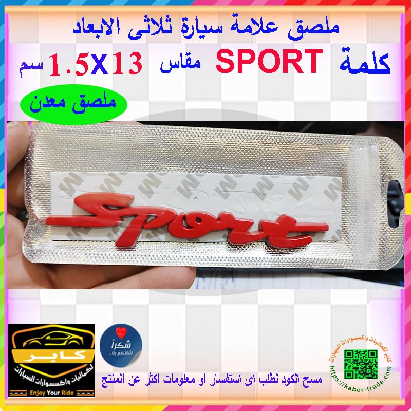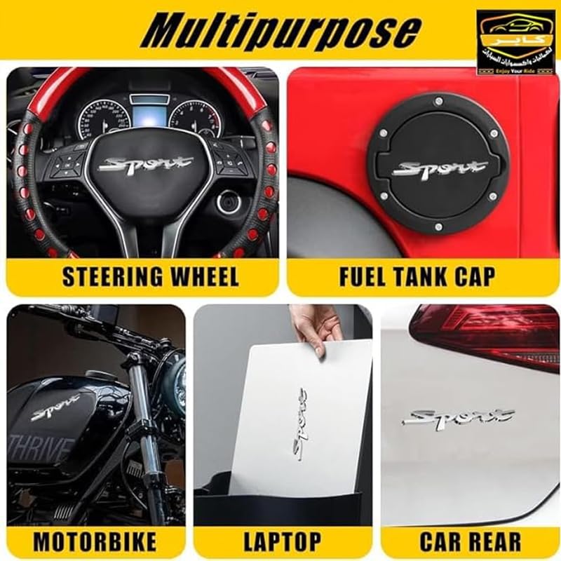 Generic - علامة ملصق شعار سيارة ثلاثى الابعاد لصق ( ملصق معدن كلمة سبورت SPORT ، مقاس 13* 1.5سم ، كود : 3276) - كابرمصر 2020