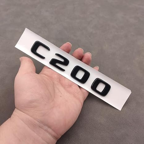 Generic - ملصق سيارة لصق ثلاثي الابعاد للسيارة متوافق مع شعار سيارة مر__ٍيدس C200 اسود مقاس 13 سم فى 2 سم بديل العلامة القديمة والتالفة او المفقودة