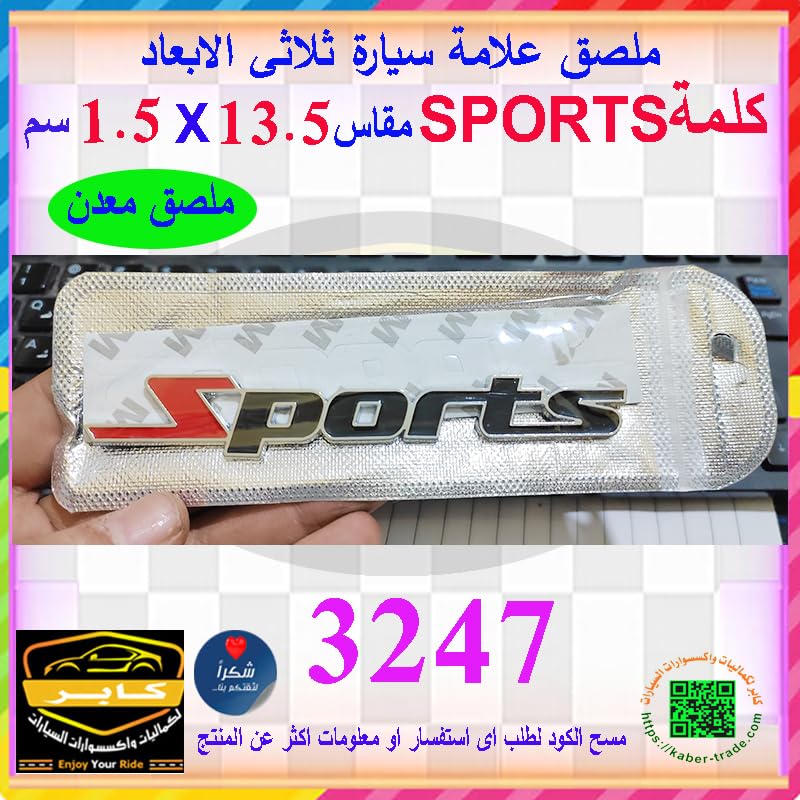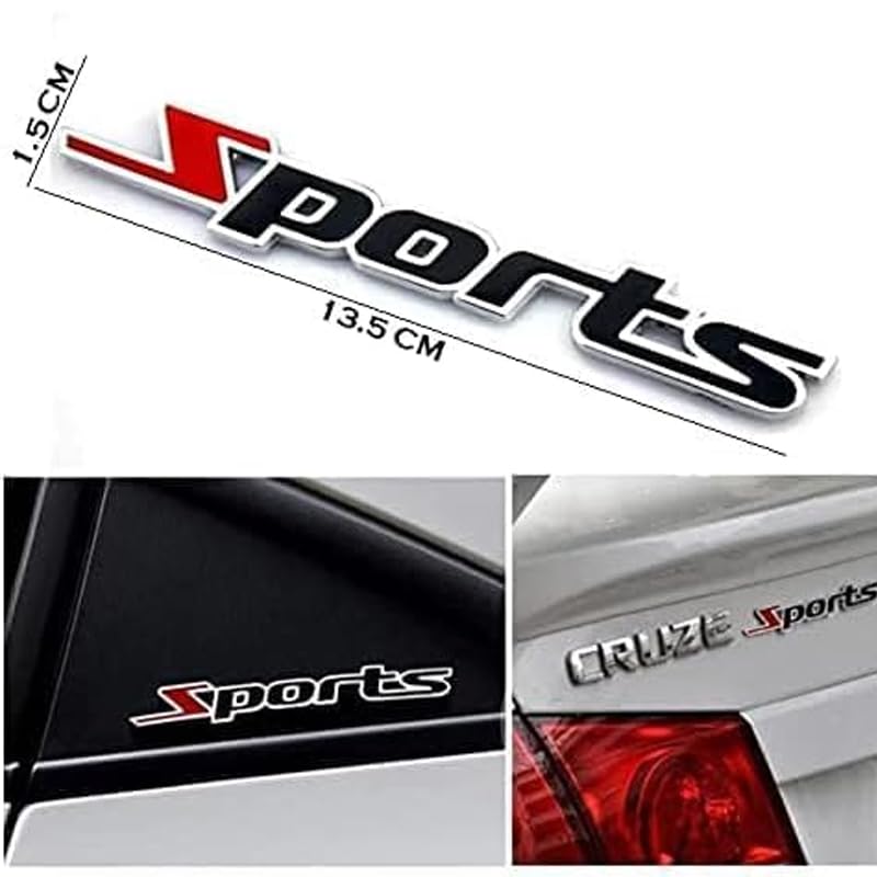 Generic - ملصقات وشعارات سيارات ثلاثى الابعاد ، بديل للعلامة المفقودة والتالفة ( ملصق معدن كلمة سبورت SPORTS ، مقاس 13.5* 1.5سم ، كود : 3247) - كابرمصر 2020