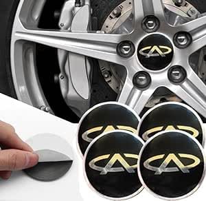 Generic - طقم غطاء جنط محور عجلة السيارة ثلاثي الابعاد - 4 قطع لصق مقاس 56 مم - متوافق مع شيري اسود