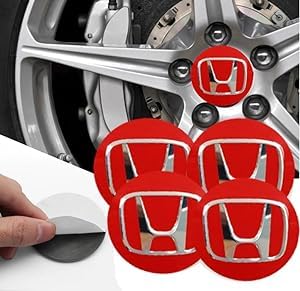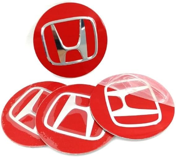 Generic - طقم غطاء جنط محور عجلة السيارة ثلاثي الابعاد - 4 قطع لصق مقاس 56 مم - متوافق مع هوندا احمر