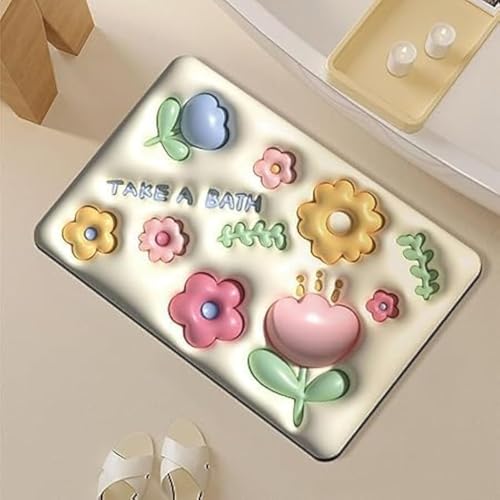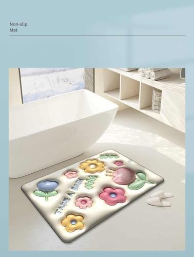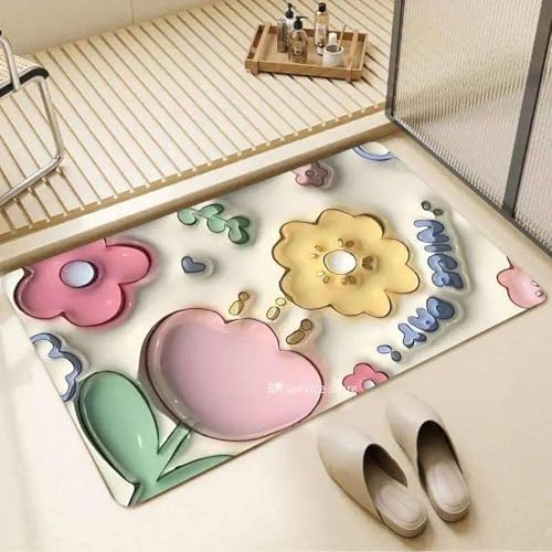 Spaceshoop - سجادة ارضية للحمام بتصميم كرتوني ثلاثي الابعاد وباب المرحاض والمدخل والحمام، فائقة الامتصاص ومضادة للانزلاق وناعمة من طين الدياتوم لديكور المنزل (A3)، متعدد الألوان