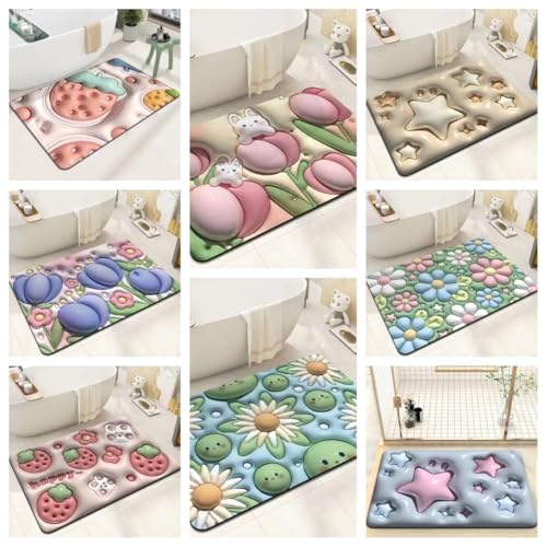 Spaceshoop - سجادة ارضية للحمام بتصميم كرتوني ثلاثي الابعاد وباب المرحاض والمدخل والحمام، فائقة الامتصاص ومضادة للانزلاق وناعمة من طين الدياتوم لديكور المنزل (A5)، متعدد الألوان