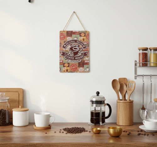 Generic - تابلوه كوفي 3D معلق من طبقتين ديكور مميز بجملة Coffee House للمطبخ مقاس 30×20 سم، طباعة لامعة بشكل كوفي مقاومة للتقشير والأتربة، تعلق علي مسامير ، اختيار مثالي لزينة المطبخ