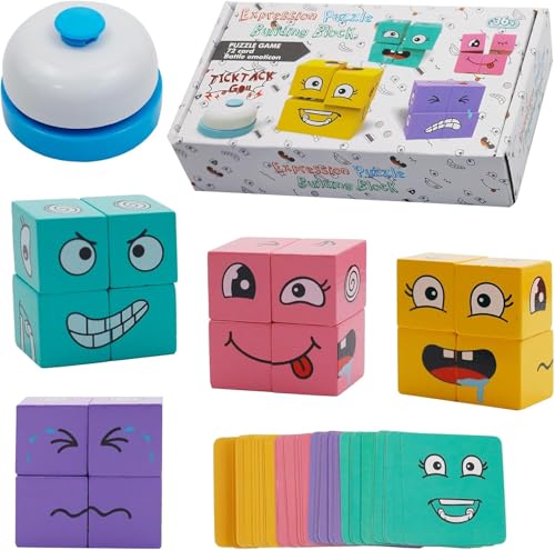 - مكعب سحري لتغيير الوجه: أحجية التعبير الخشبية هذه مناسبة للأعمار من 3 سنوات فما فوق. تتضمن 16 مكعب بناء مربع مطبوع، 72 بطاقة مهام وتأتي مع جرس. هذه لعبة تعليمية ممتعة وصعبة تسمح لـ 1-4 أشخاص باللعب في نفس الوقت