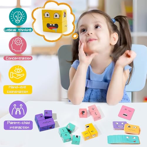 Generic - لعبة سحرية متغيرة الوجه ثلاثية الأبعاد، لعبة تعبيرات وجه خشب للأطفال من سن 3 سنوات، ألعاب أحجية تفاعلية