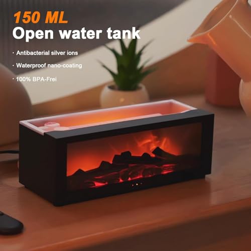 Ravsfbca - موزع زيوت عطرية بتصميم لهب ثلاثي الابعاد سعة 150 مل مع مؤقت وحماية من الاغلاق التلقائي واضاءة LED ليلية بـ7 الوان وجهاز تحكم عن بعد للمنزل والمكتب وغرفة النوم (اسود)