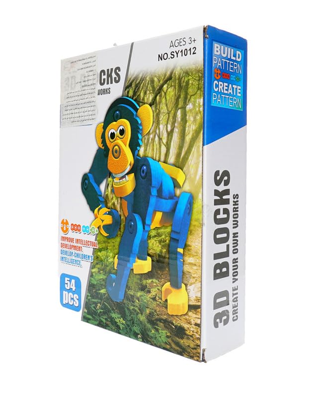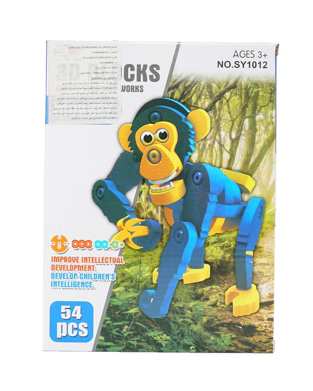 Generic - مكعبات فوم 3D شكل قرد 54 قطعه - ازرق واصفر Ofer-27