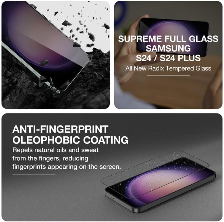 - احمِ استثماراتك وحافظ على مظهر موبايل سامسونج جالاكسي S24 بلس جديدًا تمامًا لسنوات قادمة. بفضل هيكله المصنوع من الزجاج المقوى المتين، يوفر واقي الشاشة هذا حماية طويلة الأمد ضد التلف الناتج عن الاستعمال اليومي.
