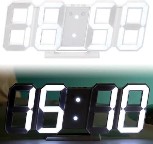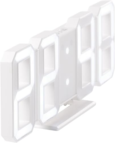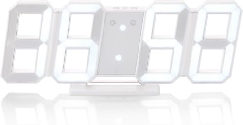 Al Arab for Import & Distribution - Ismail EL Fiky - ساعة حائط LED ثلاثية الابعاد، ساعة منبه رقمية باطار ابيض ومؤقت مع درجة حرارة لديكور المنزل وغرفة المعيشة (ابيض)