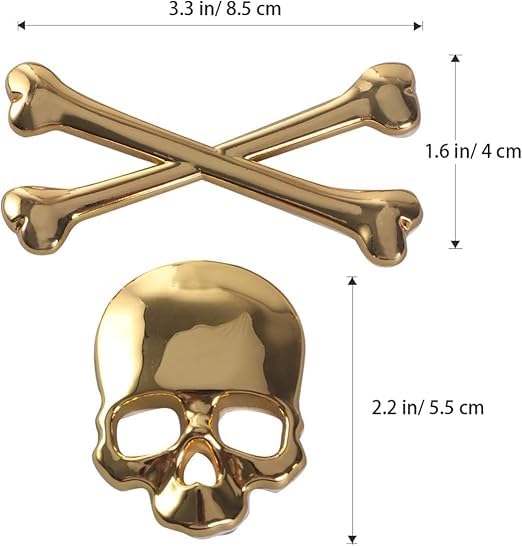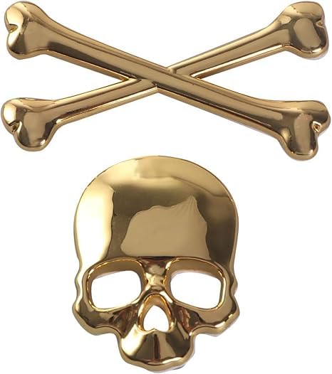 Generic - ملصق سيارة ثلاثى الابعاد معدن - ملصق شكل هيكل عظمي وعظمتين متقاطعتين - لون دهبى - قطعة واحدة - مناسب للسيارات والدراجات والشاحنات واخرى - SACAR