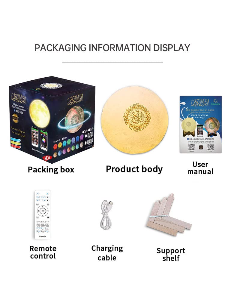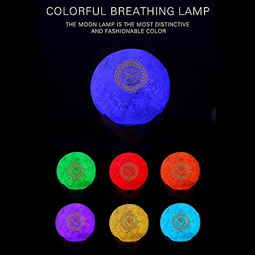 Kzan - مكبر صوت للقرآن الكريم ثلاثي الأبعاد، مكبر صوت لاسلكي محمول يعمل بالبلوتوث، مصباح يعمل باللمس، جهاز تحكم عن بعد ملون، ضوء قمر صغير ليد، هدايا