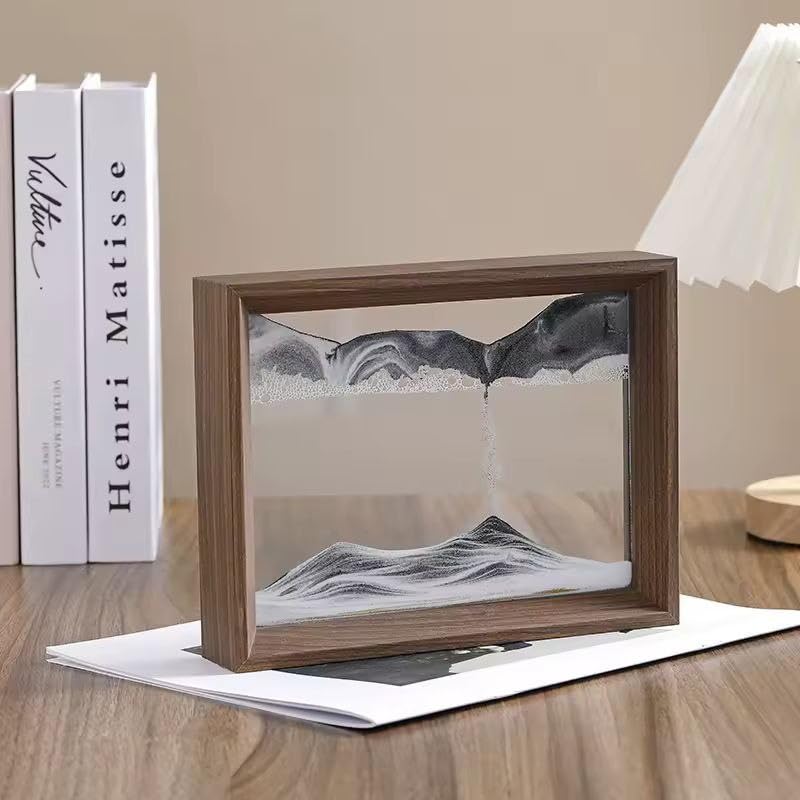 Generic - ساعة رملية ديكورية متحركة ثلاثية الأبعاد لتخفيف التوتر والاسترخاء – تصميم فني عصري بإطار أنيق للديكور المكتبي والمنزلي – حجم 17×22 سم WE