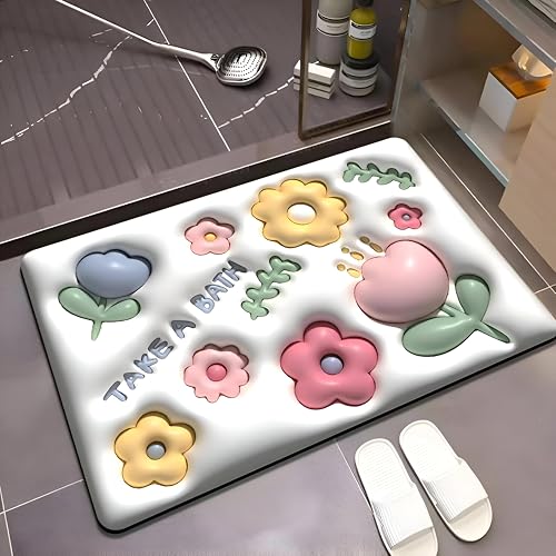 Generic - سجادة ثلاثية الأبعاد مضادة للانزلاق ومقاومة للاهتراء مع امتصاص فوري للماء وقابلة للغسل - أرضية فائقة النعومة من الدياتوم للتجفيف السريع 40 × 60 سم 1 متعدد الألوان