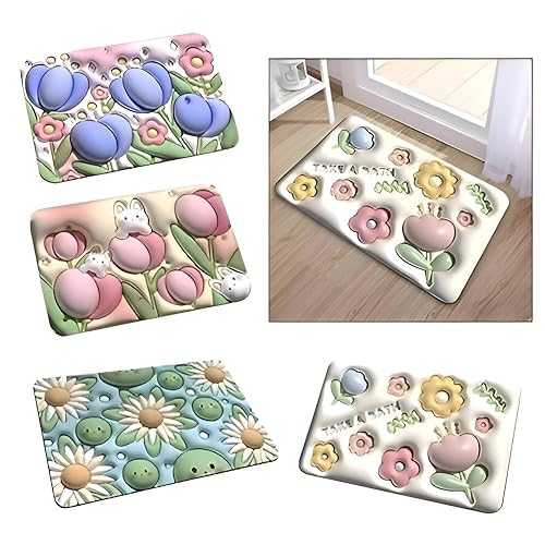 Generic - دواسة حمام ماصة بنمط ثلاثي الأبعاد ومقاومة للاهتراء ومضادة للانزلاق وسجادة أرضية قابلة للغسل - سجادة تجفيف فورية من الدياتوم شديد النعومة 40 × 60 سم 4 متعدد الألوان