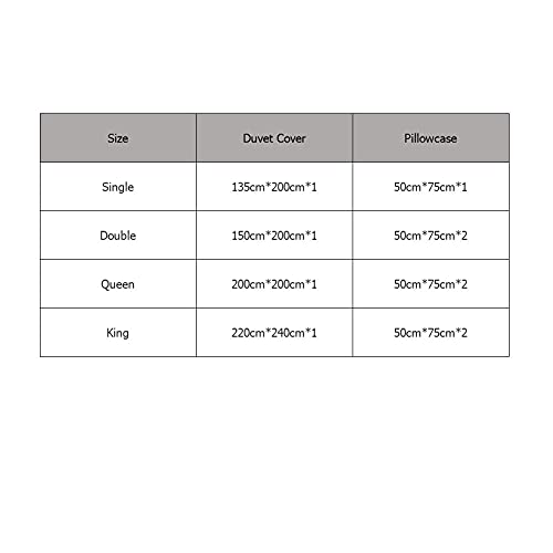 - المقاس: يتضمن غطاء لحاف واحد: 220 سم × 240 سم، 2 غطاء وسادة: 50 سم × 75 سم (بدون حشو)؛