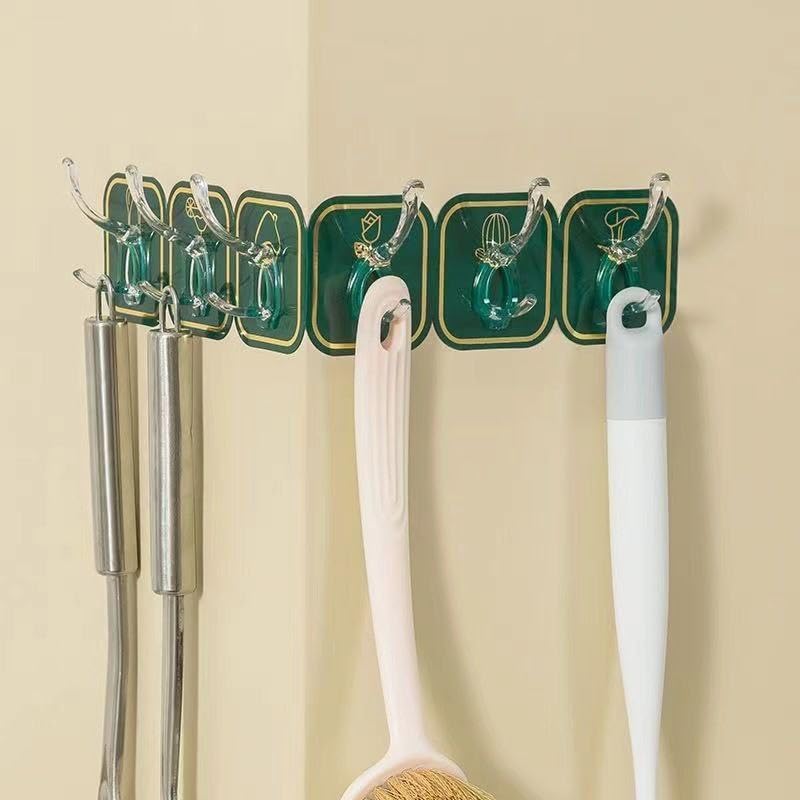 - محتويات الطقم: تحتوي العبوة على 6 خطافات حائط متصلة مع ظهر لاصق، مثالية لتنظيم العديد من الأشياء في صف واحد.
