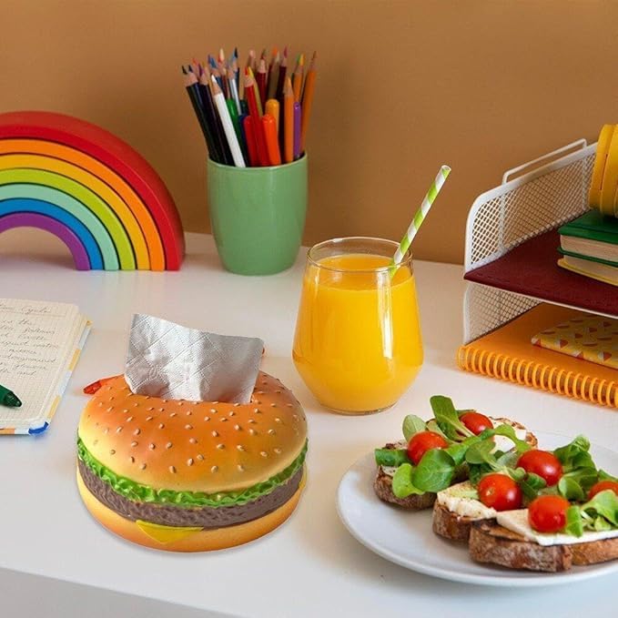 Generic - علبة مناديل بتصميم برجر واقعي ثلاثي الأبعاد، صندوق مناديل ديكوري للمكتب والمنزل والمقهى، خامة متينة وسهلة إعادة التعبئة، هدية مبتكرة