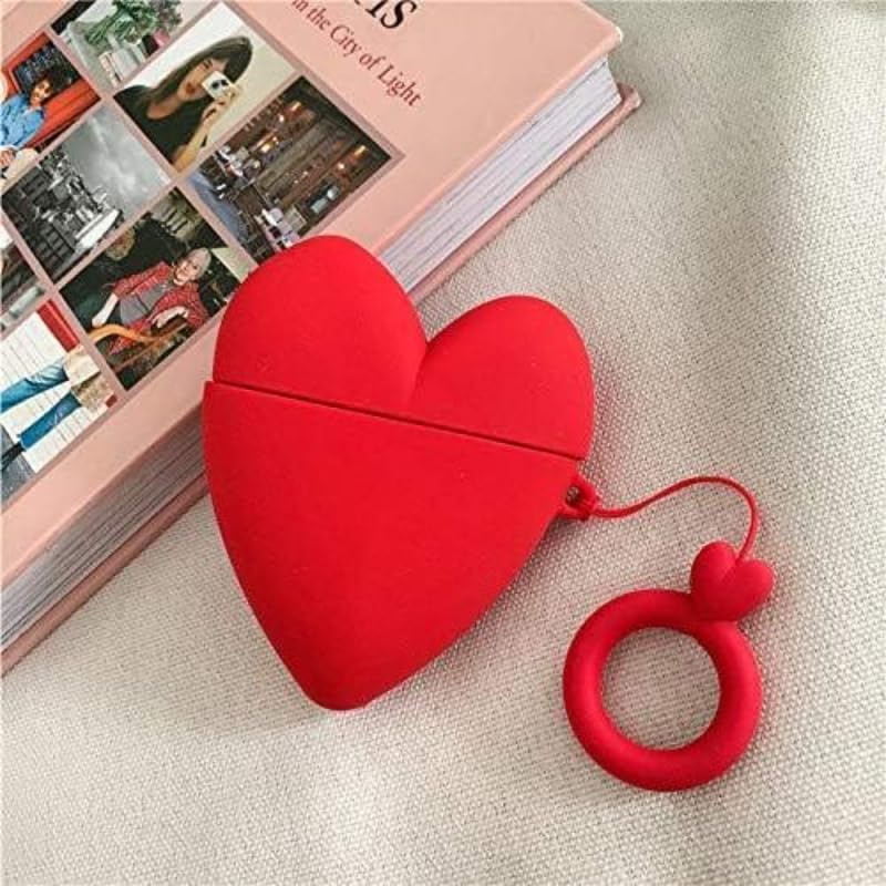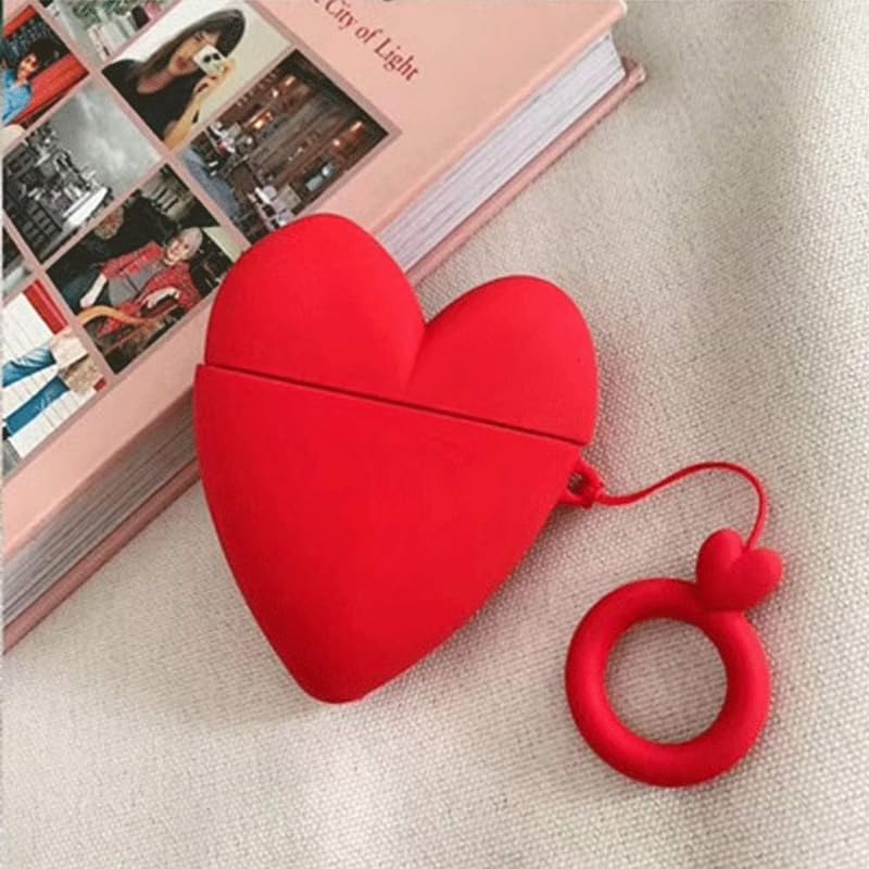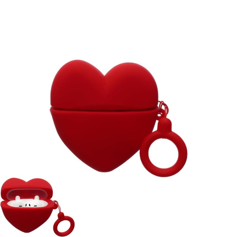 Generic - جراب حماية لسماعات الأذن اللاسلكية من السيليكون ثلاثي الأبعاد مضاد للصدمات مع مشبك سلسلة مفاتيح، تصميم قلب لطيف وسهل الفك متوافق مع سماعات هواوي بادز 3 - أحمر
