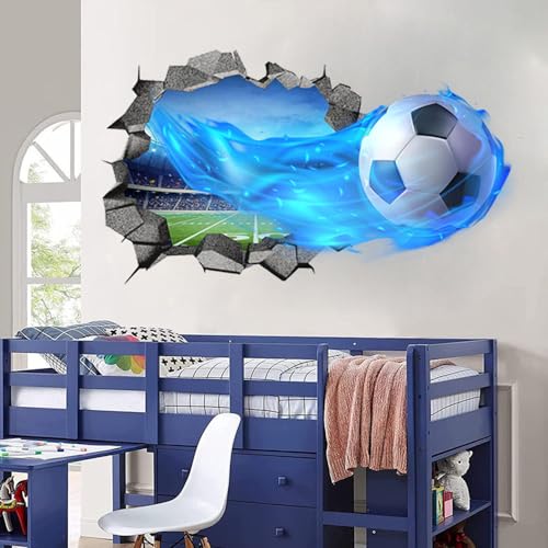 JQPYGB - ملصقات حائط ثلاثية الأبعاد بتصميم كرة القدم، ديكورات حائط فينيل قابلة للإزالة بتصميم كرة قدم لتزيين الجدار، مثالية لغرف الأولاد وغرف الألعاب، موديل T0168