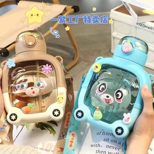 Generic - "زمزميّة مربعة ثلاثية الأبعاد بتصميم دبدوب - زجاجة مياه عالية الجودة بسعة 1000 مل، تحتوي على غطاء محكم وحزام استيكر للإغلاق، مصنوعة من - من جينيريك
