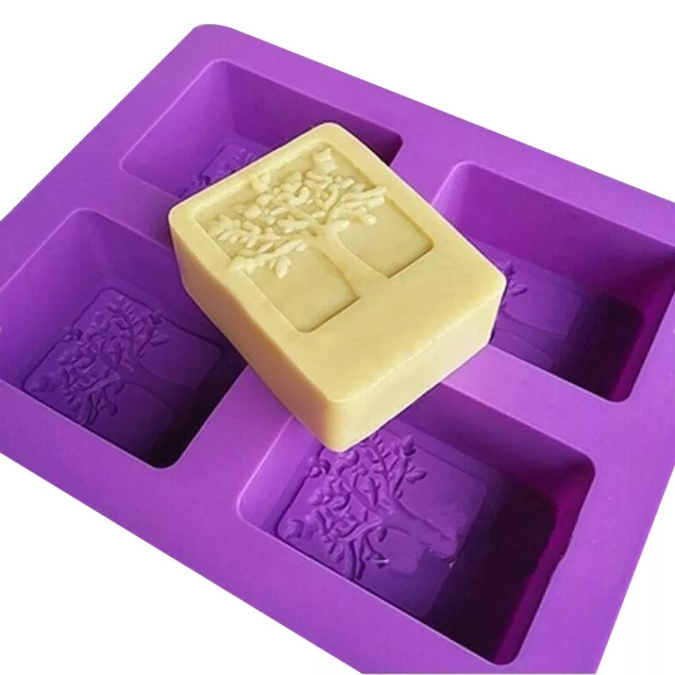 • قالب صابون ثلاثي الأبعاد شكل شجرة قالب مكون من 4 تجاويف لصناعة الصابون بشكل رائع.