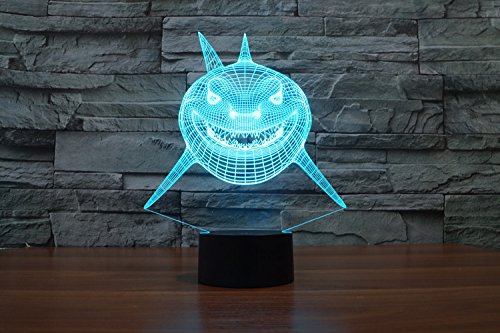 YOUQIZHI - مصباح LED متوهج ثلاثي الابعاد ليلي على شكل سمكة قرش فن النحت يضيء في انتاج تأثيرات اضاءة فريدة من نوعها رسوم متحركة وتصور وهمي بصري مذهل سبعة الوان متغيرة شفاف