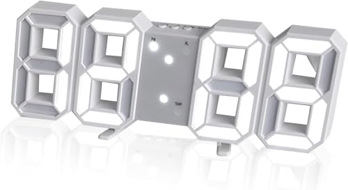 Spaceshoop - ساعة منبه رقمية ثلاثية الأبعاد للحائط مزودة بإضاءة ليد، ساعة وقت رقمية بيضاء مع سطوع قابل للتعديل تلقائيًا، وعرض الوقت/التاريخ ودرجة الحرارة لمدة 12/24 ساعة (متعددة الألوان)