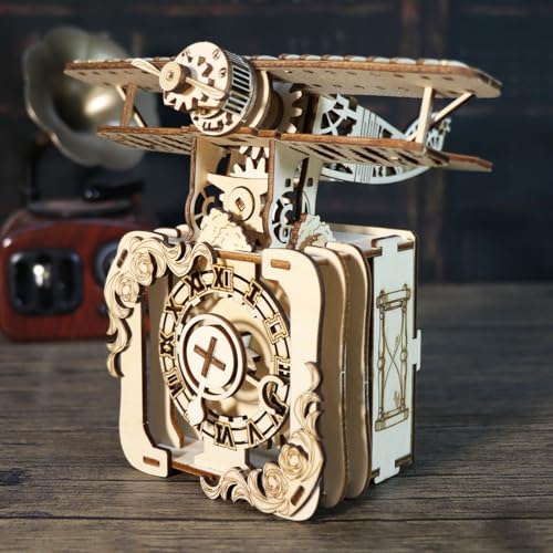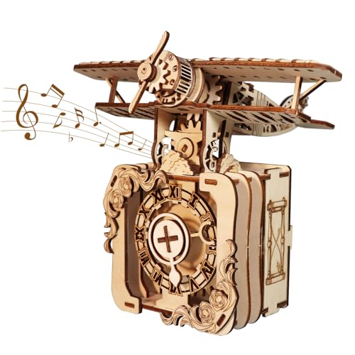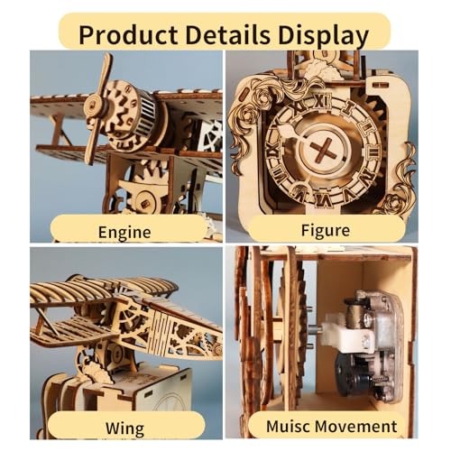 Generic - بازل خشبي ثلاثي الأبعاد على شكل طائرة بانك، صندوق موسيقى مصنوع يدويا، مجموعة نموذج تجميع للعطلات وأعياد الميلاد والكريسماس