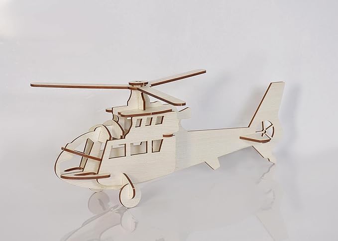 Generic - طائرة هليكوبتر خشبية ثلاثية الابعاد، مجموعة نموذج تجميع تعليمي للاعمار من 3 سنوات فما فوق