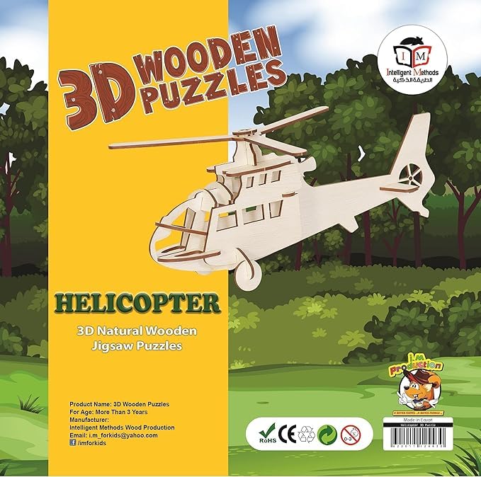 - لعبة تعليمية: أحجية طائرة هليكوبتر خشبية ثلاثية الأبعاد مصممة لتعزيز الوعي المكاني والمهارات الحركية الدقيقة مع توفير تجربة تجميع جذابة