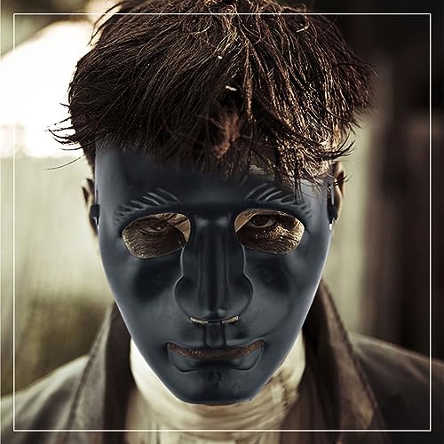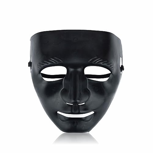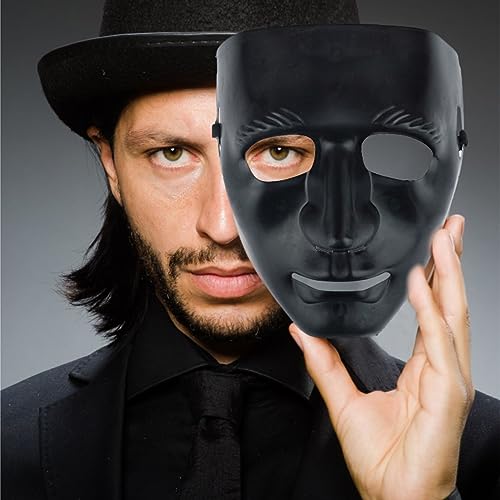 3HA HAHAHA - قناع روبوت أسود للمجهول بشريط مطاطي قابل للتعديل للحفلات التنكرية للبالغين والأطفال، قناع رعب اسود لكامل الوجه كاكسسوار مزخرف من 3 اتش ايه هاهاها، قطعة واحدة