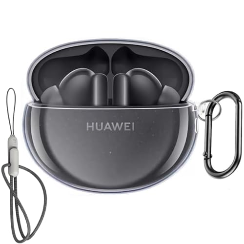 Betcolyn - [3 في 1] حافظة سماعات اذن هواوي فري بادز 6i من بيتكلين، غطاء واقي شفاف من البولي يوريثين الحراري مع سلسلة مفاتيح وحبل قصير للنساء والرجال - شفاف