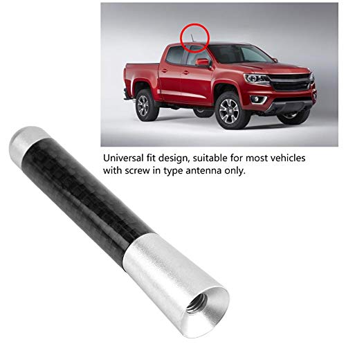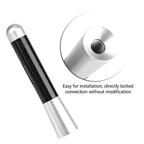 Qiilu - هوائي قصير تلقائي 3 انش، هوائي راديو ببرغي من الياف الكربون لتعديل السيارة العالمي (فضي)