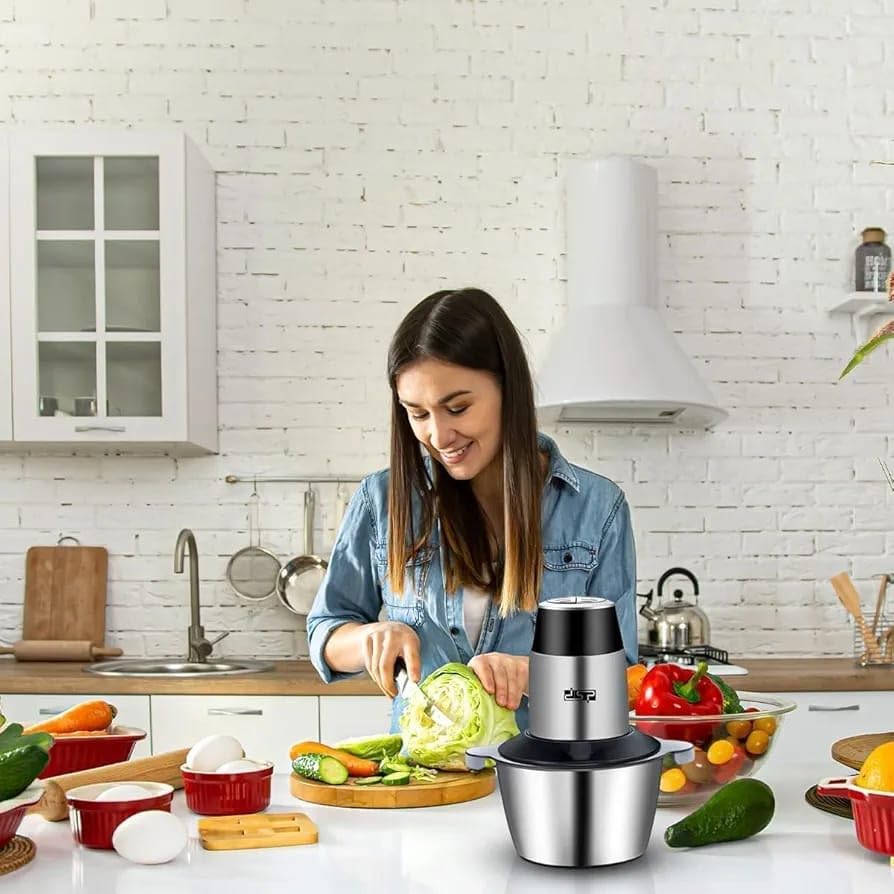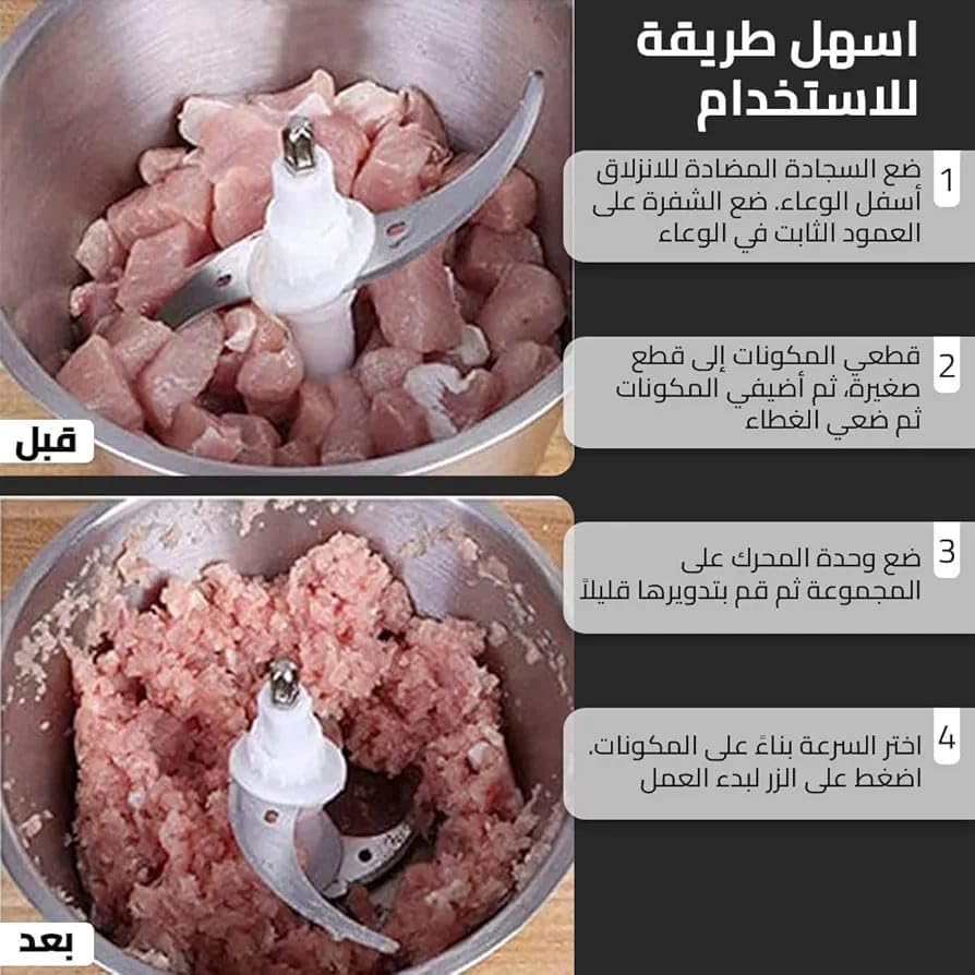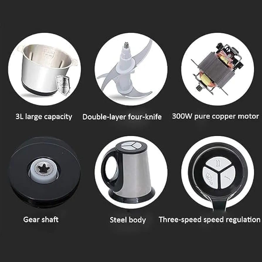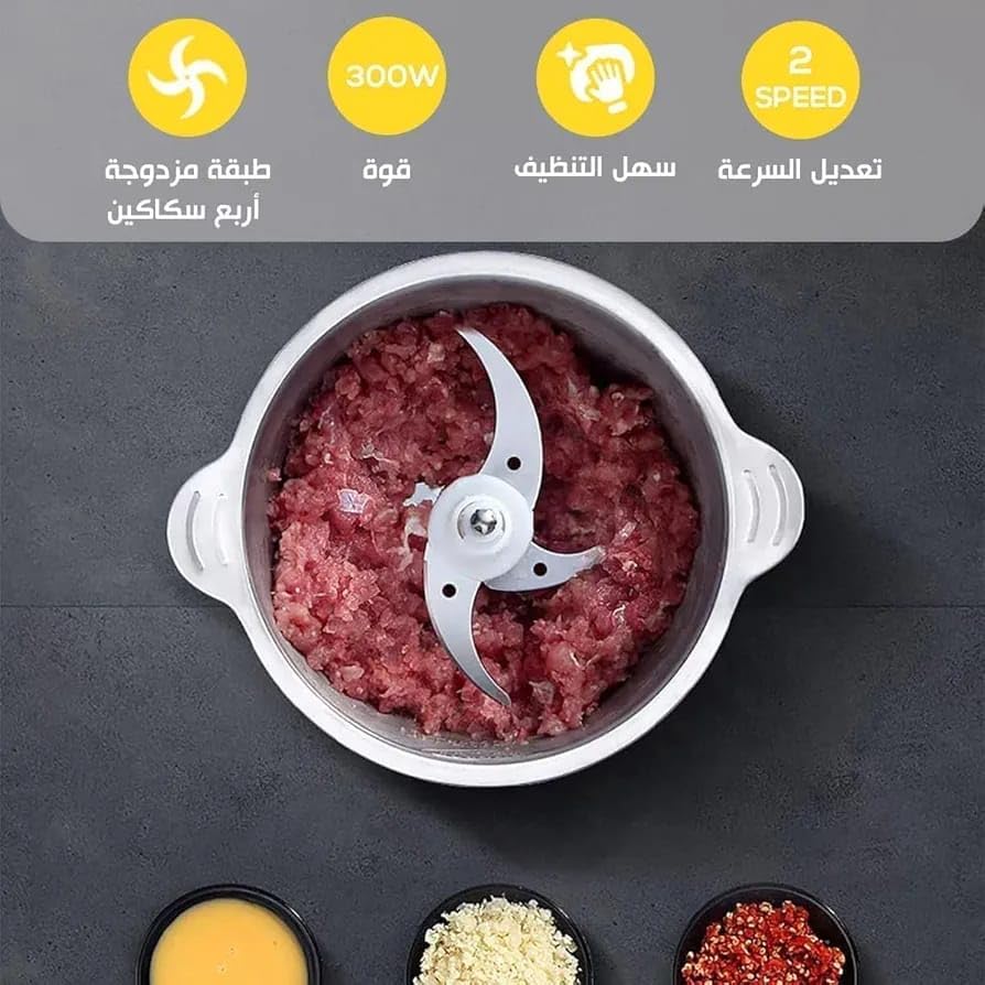 Generic - مفرمة لحوم كهربائية ومحضر طعام 3 لتر - مفرمة وكبة كهربائية 3 لتر - 4 شفرات من الستانلس ستيل - 4 شفرات ستانلس ستيل - وعاء ستانلس ستيل وسرعتان - وعاء ستيل وسرعتان للتحكم