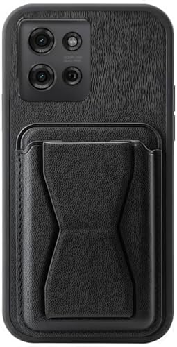 Generic - جراب حماية من الجلد مقاوم للصدمات مزود بفتحات لتخزين البطاقات وميزة الحامل المدمج مصنوع من جلد صناعي لمظهر أنيق وقبضة مريحة متوافق مع موبايل موتو G75 من ثري ام، لون أسود