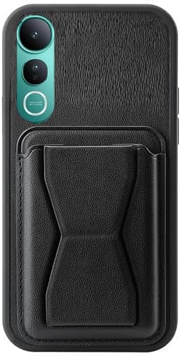 Generic - جراب حماية خلفي جلد لموبايل فيفو V50 لايت، مصنوع من الجلد المقاوم للصدمات، تحتوي على فتحة لتخزين البطاقات، مسند مدمج من الجلد الصناعي لمظهر أنيق وقبضة مريحة من 3 ام ستور (أسود)