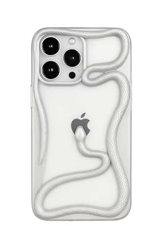 Generic - جراب موبايل بتصميم ثعبان من 3 ام ستور لموبايل ايفون 14 بلس/15 بلس بلينغ فاخر ثلاثي الابعاد بتصميم ثعبان مجوف مطلي بالكهرباء من البولي يوريثين الحراري الناعم لتبديد الحرارة (فضي)
