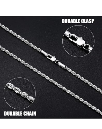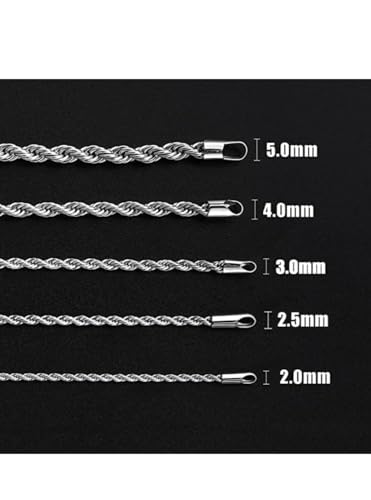 Generic - سلسلة حبل 3 ملم للرجال، سلسلة فضية اللون، سلسلة من الستانلس ستيل للرجال والنساء، 20 انش، ستانلس ستيل عالي اللمعان