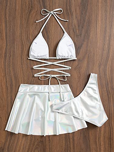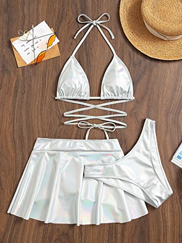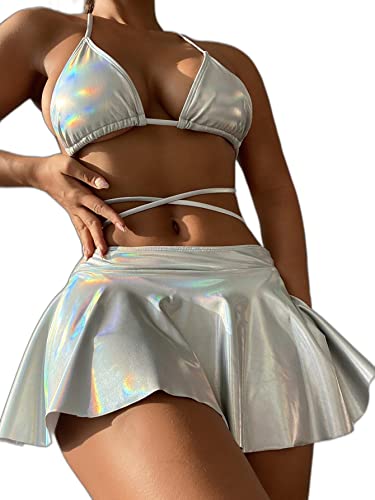 SHEIN - مايوه بيكيني بتصميم مثلث معدني وتنورة للشاطئ من 3 قطع