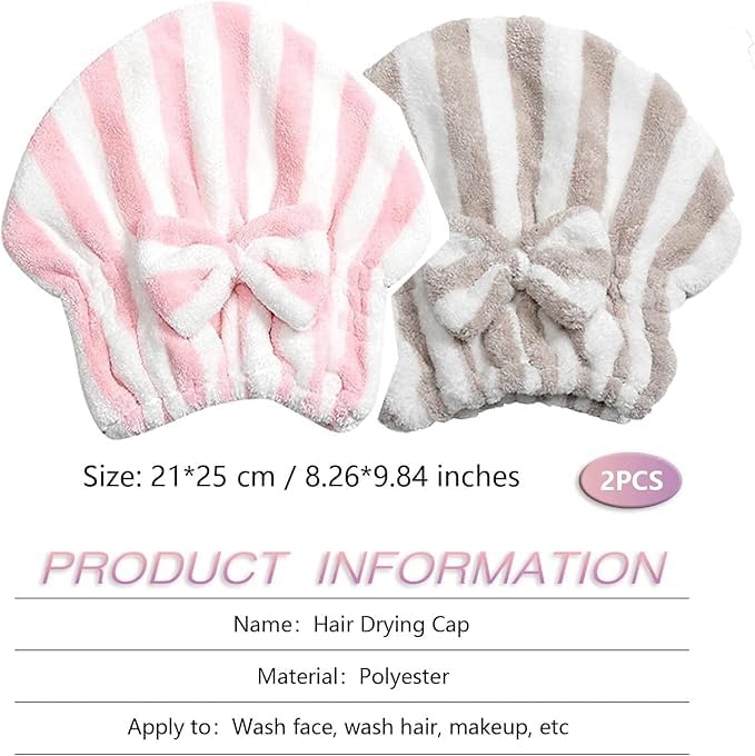 - التعبئة والتغليف: 2 فوطة تنشيف شعر بقياس 21 × 25 سم تقريبًا.