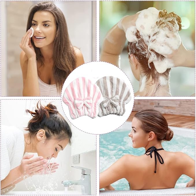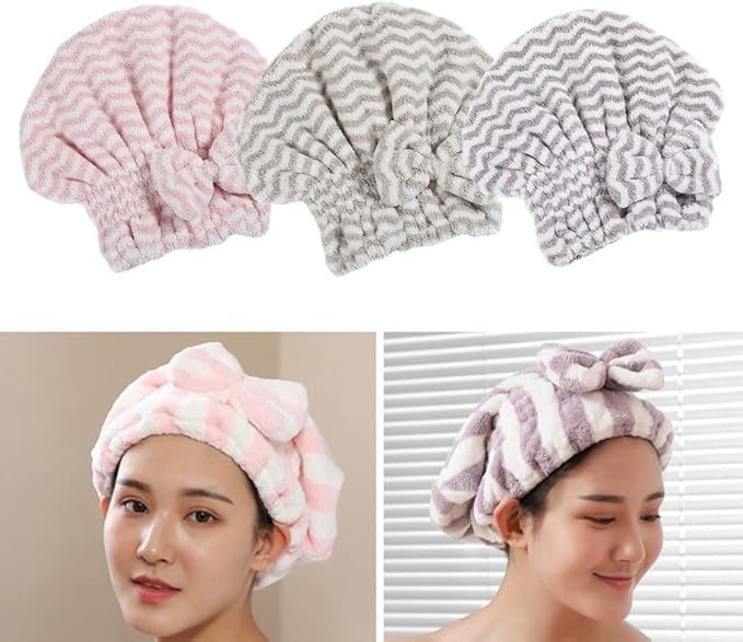 GENERIC - فوطة شعر بتصميم طاقية من المايكروفايبر للنساء، كابات تجفيف الشعر مع عقدة فيونكة، قبعة تجفيف سريعة الامتصاص، قبعة فوطة ناعمة لتجفيف الشعر، سريعة الجفاف للشعر الرطب والشعر الطويل الكيرلي، 3 قطع