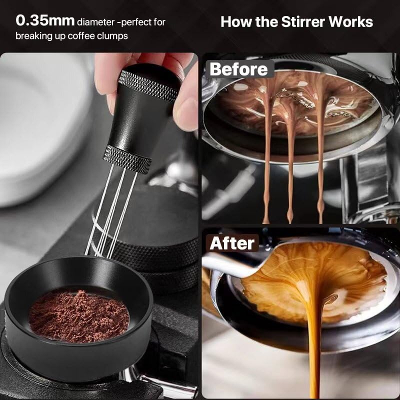 - 【اصنع قهوة اسبريسو أفضل وخدمة جيدة】مجموعة المكبس الخاصة بنا جاهزة للباريستا المحترفين وباريستا المنزل لتحريك مسحوق القهوة وصنع اسبريسو أفضل. تتضمن العبوة 1 × أداة توزيع مع حامل، 10 إبر إضافية من الفولاذ المقاوم للصدأ الآمن غذائيًا، 1 × أنبوب تخزين الإبر، 1 × قمع جرعات و1 × وسادة كبس.