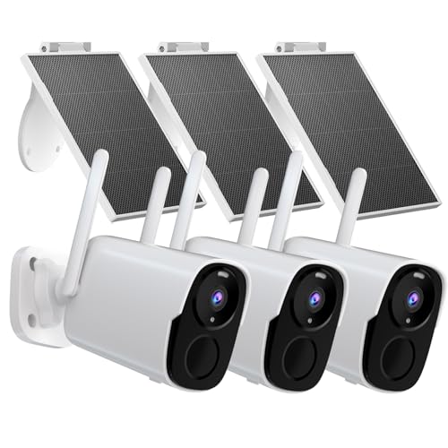Rraycom - كاميرا مراقبة منزلية خارجية مقاومة للماء IP66، بدقة 2K ورؤية ليلية ملونة بزاوية 120 وصوت باتجاهين وكشف حركة بالذكاء الاصطناعي، واي فاي، طاقة شمسية وبطارية، متوافقة مع اليكسا، SD وتخزين سحابي، 3 قطع