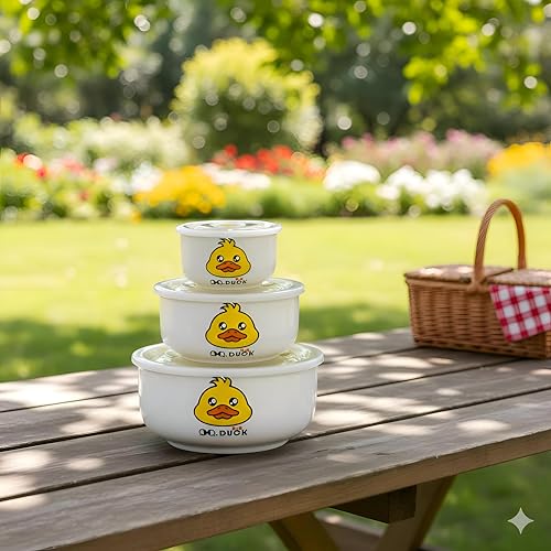 Generic - مجموعة علب بطبعة بطة متعددة الاستخدامات، مناسبة للميكروويف وغسالة الأطباق وباب الثلاجة، مثالية لفصل الصلصات وتخزين الأعشاب والوجبات الخفيفة، للاستخدام اليومي المتعدد، خالية من مادة البيسفينول أ، 3 قطع