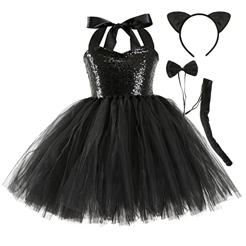 GYHH - زي تنكري بتصميم حيوانات، فستان بجيبة منفوشة بتصميم زرافة وفهد وقطة، ملابس تنكرية للهالوين والكريسماس وأعياد الميلاد للبنات البيبي والطفلات، مقاس من 2 إلى 10 سنوات، طقم من 3 قطع